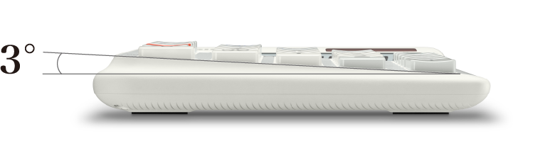 將操作面傾斜 3° 可確保與右手手指舒適貼合。按鍵的垂直階段式配置令敲鍵方向保持垂直。這些全新構造讓用家能以自然的手部狀態輸入按鍵。